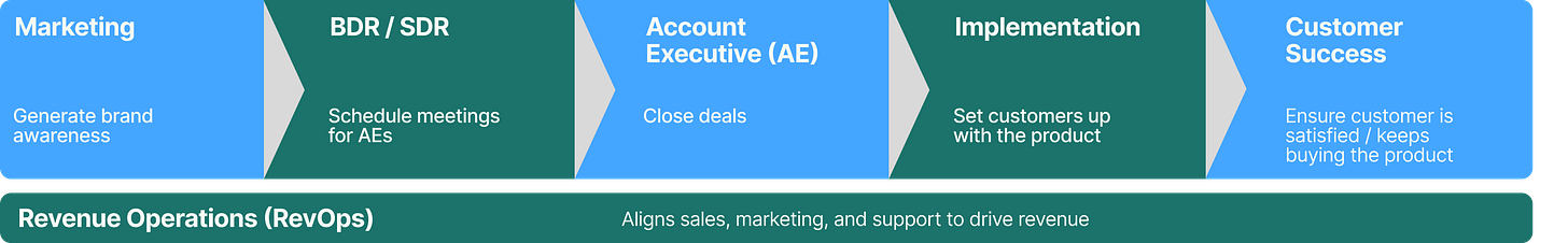 At its inception, The Takeoff started because there are plenty of resources for students interested in investment banking and consulting, but not enough for those interested in startups. Over time, the newsletter shifted toward healthcare, but this piece is a return to our roots. I’ll break down the key roles across sales and engineering, so you know what’s out there and where you might fit.