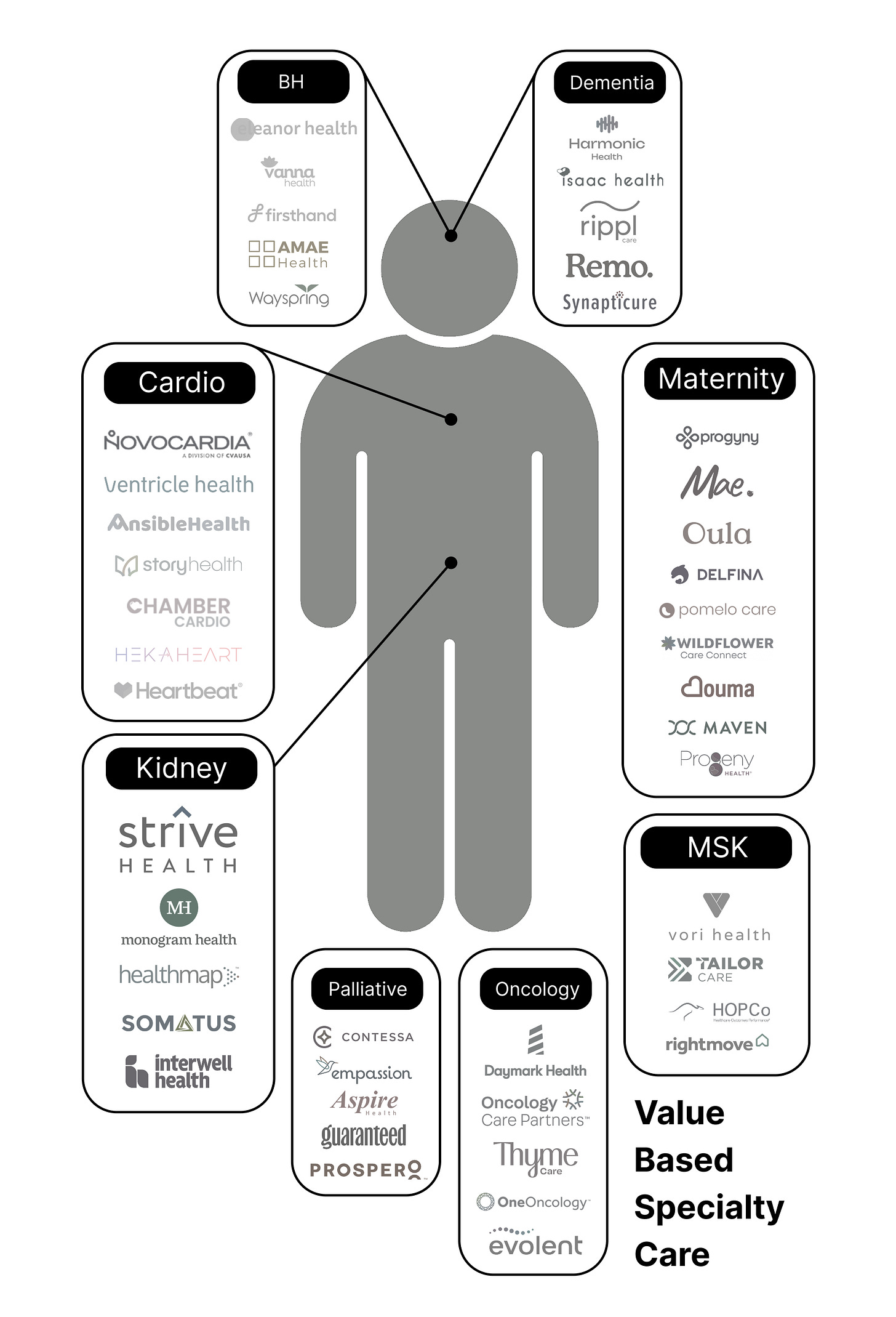 With over 160 specialties and sub-specialties in the US, there has been no shortage of venture-funded, value-based specialty care organizations over the last ten years. Examining these specialties, there are several factors that make for an attractive opportunity: